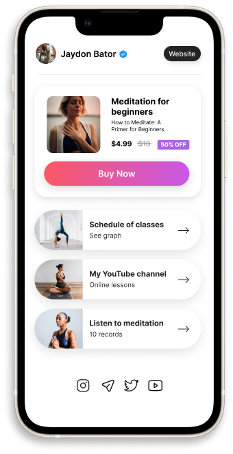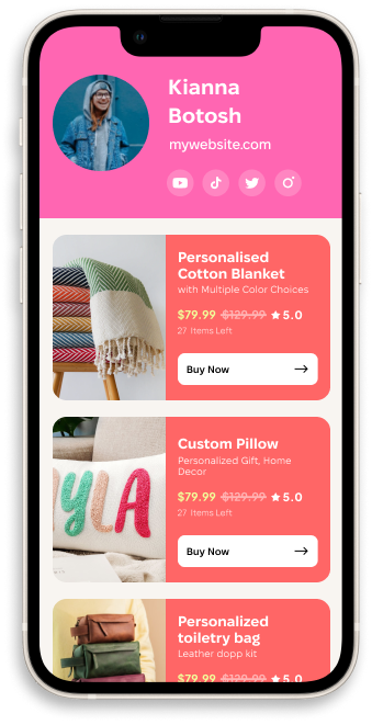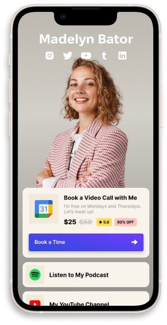 Different Blocks, integrations and visual styles can help you create a UniLink that looks and feels like you and your brand. Explore our library of custom templates to grow and connect with your audience even more easily!